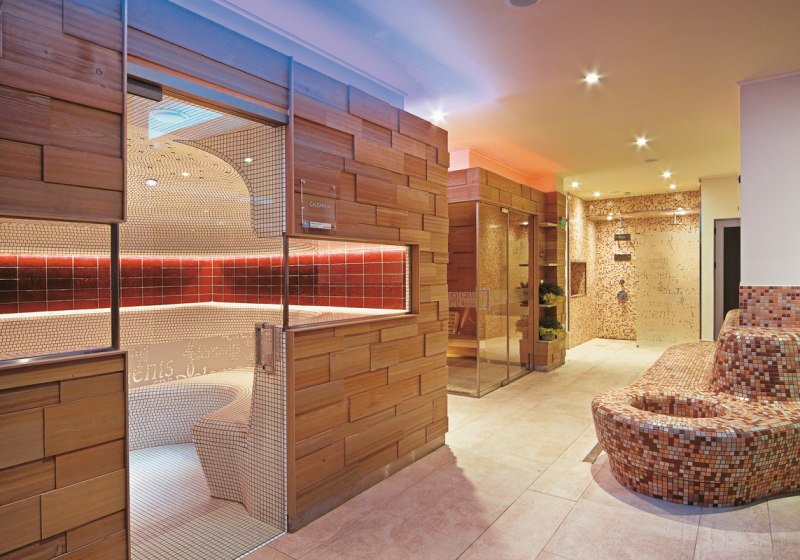 - Sauna: Sauna, Dampfbad und Caldarium plus Eisfontäne für Abkühlung.