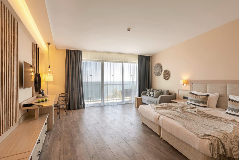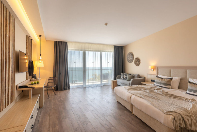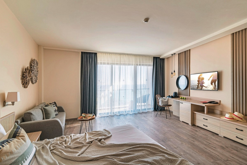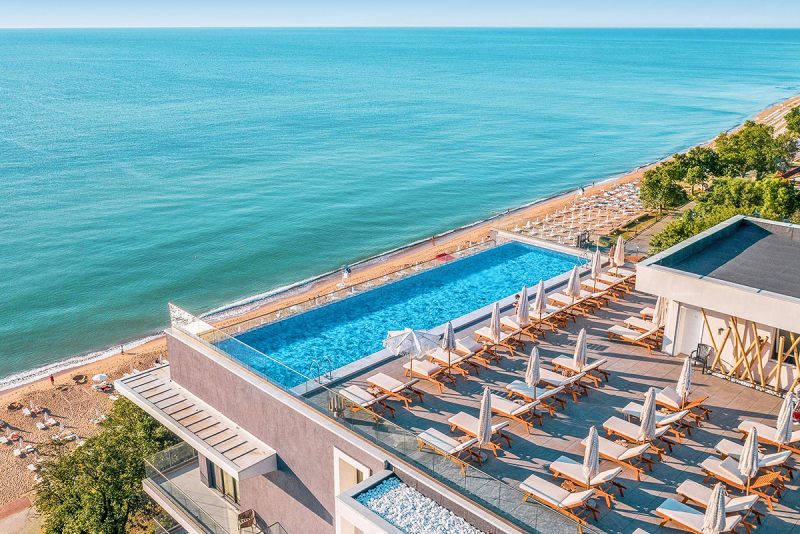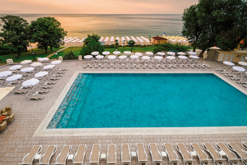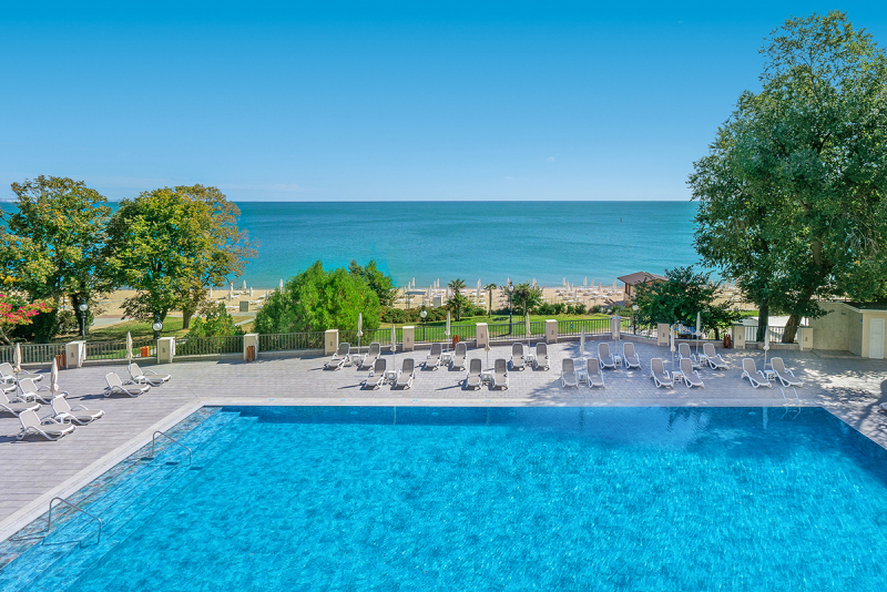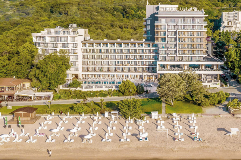 Das Hotel befindet sich in einer Top-Strandlage, direkt an der Uferpromenade. Der feine lange Sandstrand ist nur 10 Meter entfernt und bietet einen erstklassigen Platz zum Sonnenbaden und Entspannen. Das Hotel ist 30 km vom Flughafen Varna und 137 km vom Flughafen Burgas entfernt. Das Stadt-/Ortszentrum und die Bushaltestelle sind nur 500 m entfernt, während Einkaufsmöglichkeiten nur 50 m entfernt sind. Dies macht das Grifid Hotel Vistamar zum idealen Ausgangspunkt für die Erkundung der Umgebung.