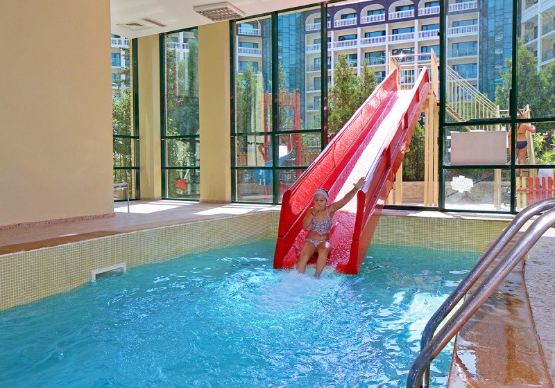 - Zwei Pools: Außenpool und Innenpool mit Rutsche strukturieren Eure Badetage.
