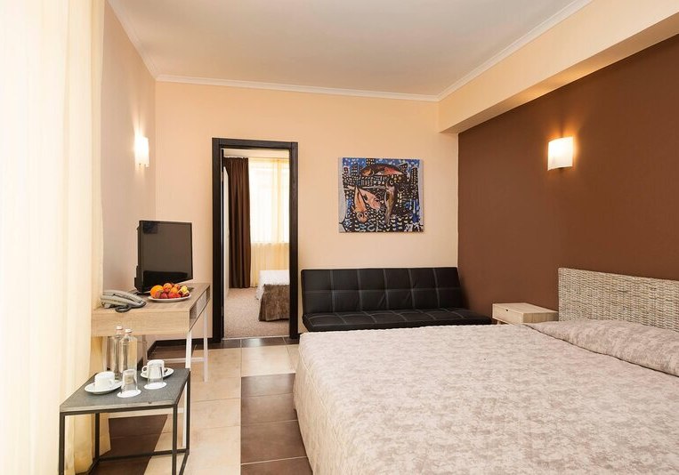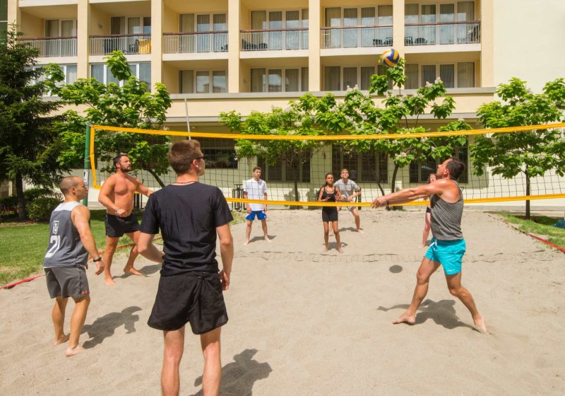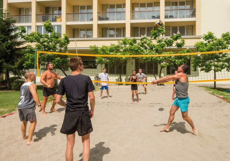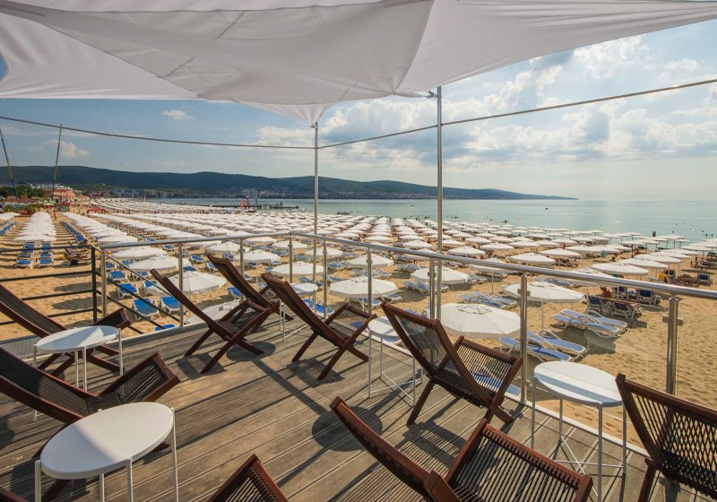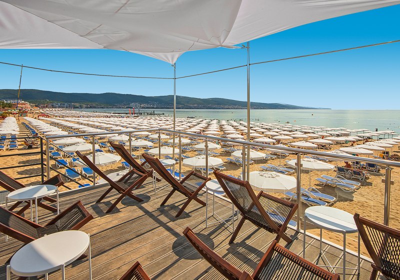 Ihr wohnt in Sunny Beach, Bulgarien, mit kurzem Weg zum Meer: rund 100 Meter trennen Euch vom öffentlichen Sandstrand, etwa 250 Meter vom hoteleigenen Strandabschnitt. Die Umgebung ist auf Strandtage ausgelegt, mit Strandbar und klaren Orientierungspunkten zwischen Hotelanlagen und Küstenlinie. Highlight: Eigener Strandabschnitt – nahe genug für spontane Badepausen.