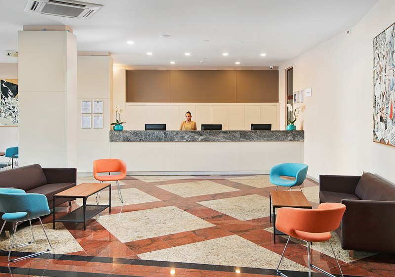 Der Komplex ist auf Übersicht gebaut: drei Gebäude mit eigenen Rezeptionen, Lifte, zwei Konferenzräume und Hotelparkplatz. Geldwechsel in Block A und B, WLAN im gesamten Hotel, Check-in ab 15:00 Uhr, Check-out bis 12:00 Uhr – so behaltet Ihr Struktur und Zeitplan im Griff. Highlight: Mehrere Servicepunkte reduzieren Wege und Wartezeiten.