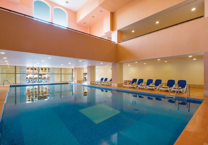 Die Poollandschaft bietet drei Außenpools und bequeme Liegen mit Sonnenschirmen, ergänzt durch ein beheiztes Hallenbad. So plant Ihr unabhängig vom Wetter. Wer zwischendurch Ruhe sucht, findet sie im Spa-Bereich. Kinder freuen sich über Wasserrutschen, Ihr über kurze Wege zur Snackbar. Highlight: Innenpool beheizt – verlässliche Badezeit ohne Wetterfrage.
