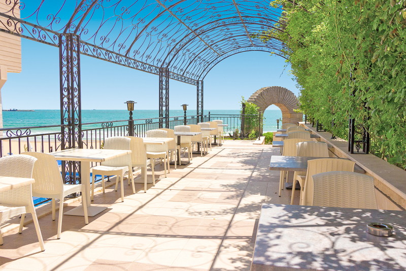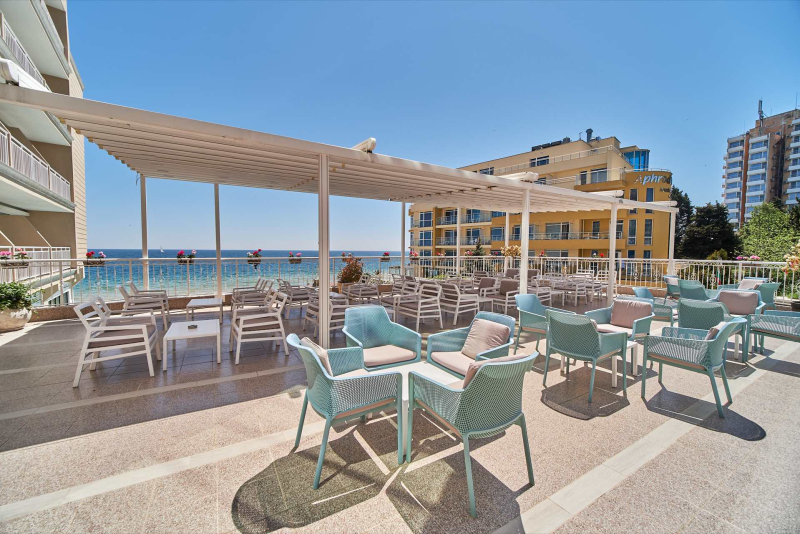 Die Mahlzeiten werden in einem Buffetrestaurant und in einem À-la-carte Restaurant angeboten. Zwischen 12.00 und 18.00 Uhr kann man in den drei Bars des SENTIDO Bilyana Beach Snacks bestellen. Nur wenige Gehminuten vom Hotel entfernt in der Altstadt von Nessebar haben in der Sommersaison zahlreiche Restaurants, Bars und Diskotheken geöffnet.Sport / Unterhaltung / Pool