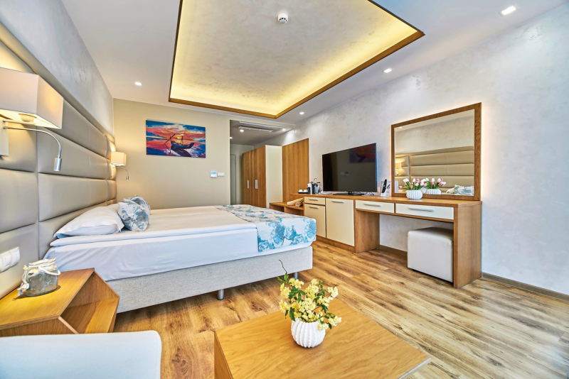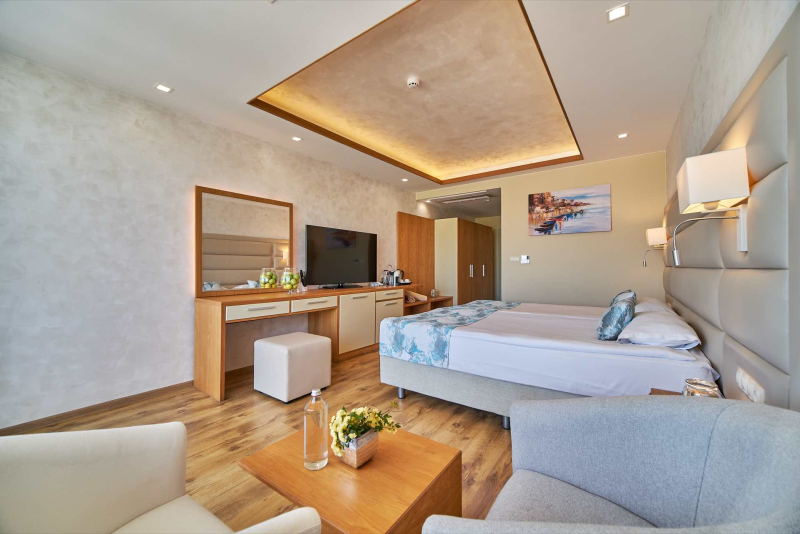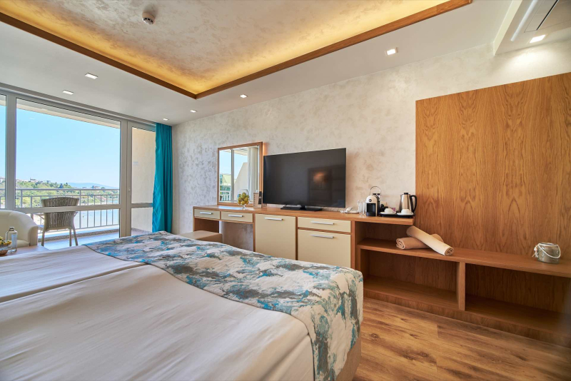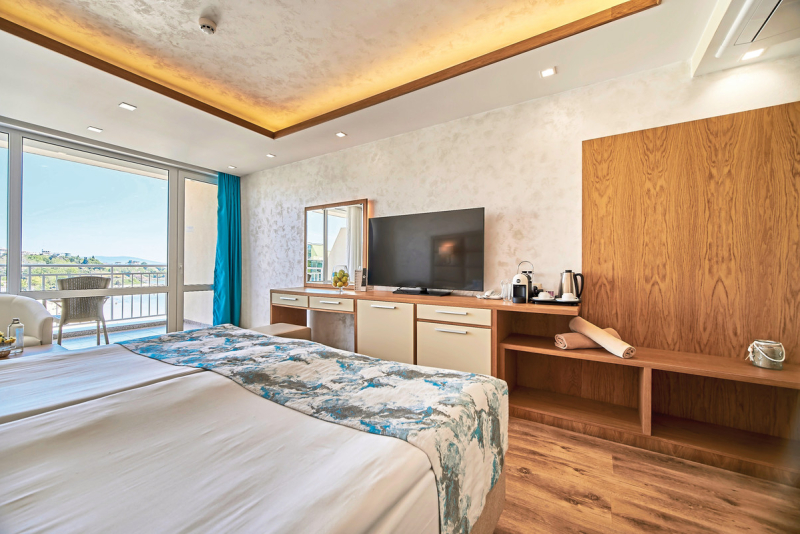 Alle 137 Zimmer im SENTIDO Bilyana Beach sind klimatisiert und in hellem, weißen Design mit dezenten Blautönen gestaltet. Ob Doppelzimmer Standard, Komfort-Doppelzimmer, Studio-Apartment, Ein-Zimmer-Wohnung oder Familienzimmer, alle sind mit Kaffee- und Teezubehör, einer Minibar, Sat-TV und Balkon ausgestattet. Nur das Promo-Doppelzimmer, das mit 25 Quadratmetern die kleinste Zimmerkategorie darstellt, verfügt über keinen Balkon. Die Zimmer können mit Meeresblick, mit Blick in die Innenstadt oder mit seitlichem Blick, der sowohl die Sicht aufs Meer als auch in die Stadt ermöglicht, gebucht werden.Gastronomie / Restaurants