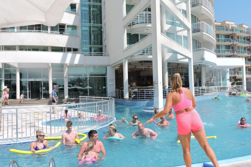 Für die täglichen Freizeitbeschäftigungen gibt es einen attraktiven Süßwasser-Swimmingpool, der auch ein integriertes Kinderbecken besitzt. Dort kann man auch die Sonnenterrasse mit Liegen und Schirmen genießen. An sechs Tagen in der Woche gibt es zusätzlich eine Animation für die Erwachsenen und Kinder profitieren von einem Spielplatz und einem Spielzimmer. Sportlich kann man sich zudem im Fitnessraum vergnügen.