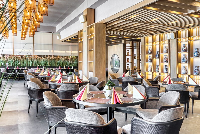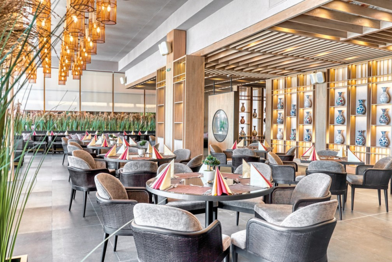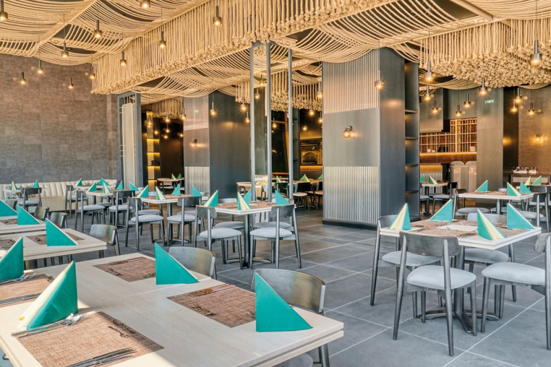 Das Resort verfügt über drei Restaurants, darunter ein Buffetrestaurant mit Showcooking und ein À-la-carte-Restaurant mit italienischer Küche. Für Gäste, die mindestens 5 Nächte bleiben, ist einmal pro Aufenthalt ein Abendessen im À-la-carte-Restaurant inklusive. Das Angebot an Bars umfasst eine Lobbybar, Poolbar, Snackbar und drei weitere Bars.
