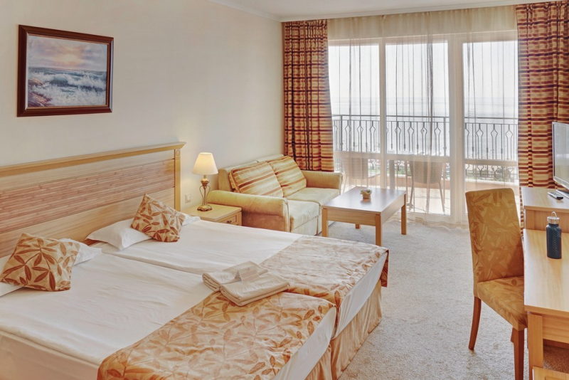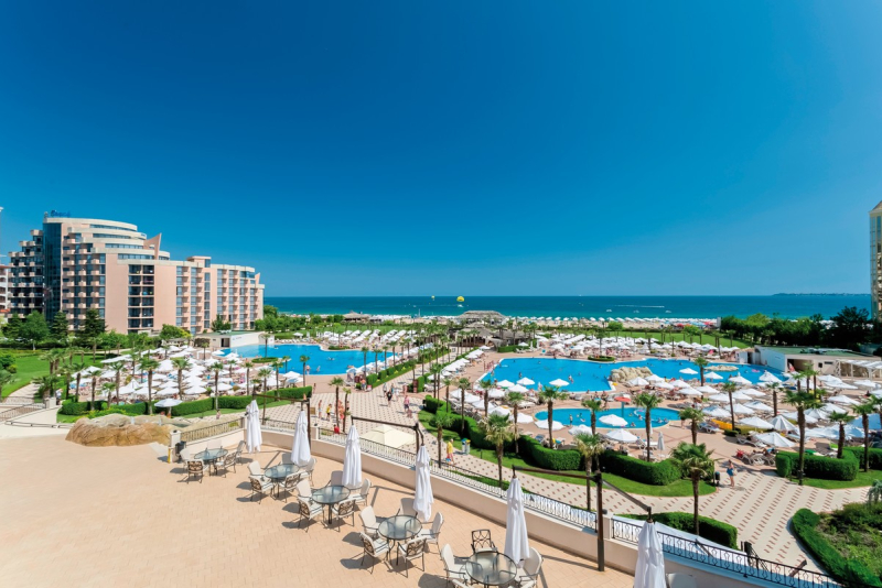 Das DIT Majestic Beach Resort ist ein luxuriöses 4-Sterne-Resort, das aufgrund seiner direkten Strandlage, seinem erstklassigen Service und seiner modernen Einrichtung bei Gästen besonders beliebt ist. Das Resort liegt nur durch die Uferpromenade getrennt vom feinsandigen Sandstrand und nur 3 km vom belebten Zentrum von Sonnenstrand entfernt. Mit insgesamt 409 Zimmern/Wohneinheiten, inklusive eleganter Superior Doppelzimmer und geräumiger Appartements, einem weitläufigen Außenbereich mit zwei Süßwasser-Pools und einer Sonnenterrasse, lädt das Resort zu einem entspannten und genussvollen Aufenthalt ein.