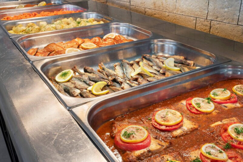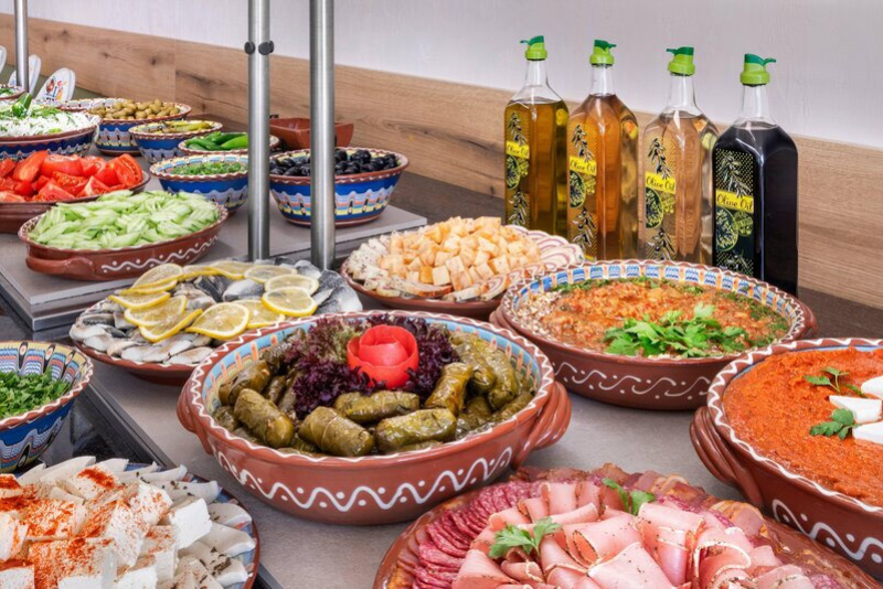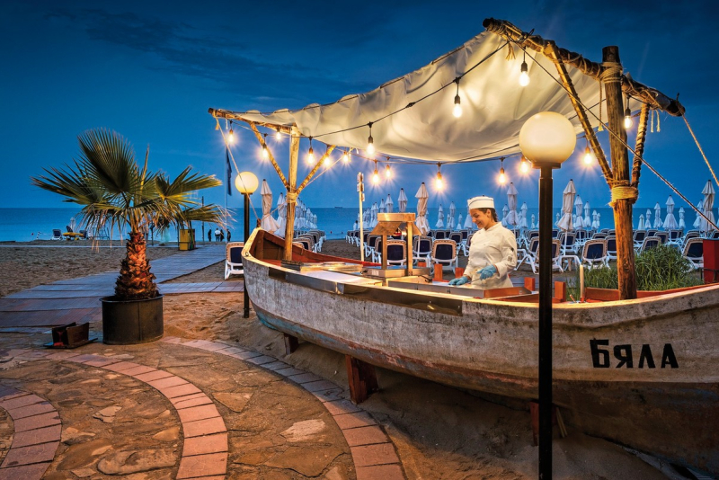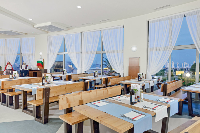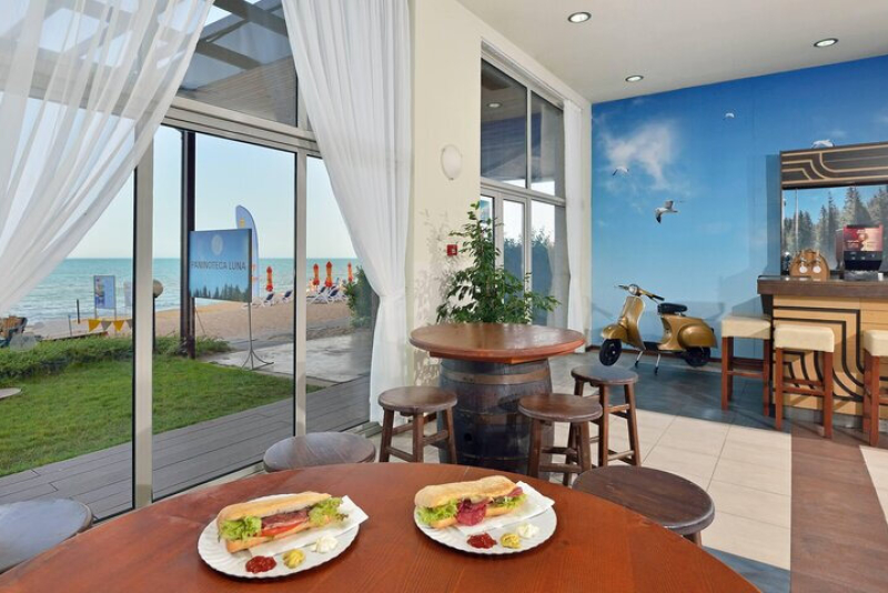 Das Sol Luna Bay verfügt über vier Restaurants, die eine Vielzahl an kulinarischen Erfahrungen bieten. Das Buffetrestaurant bietet internationale Küche und Showcooking zum Frühstück, Mittag- und Abendessen. Hinzu kommen ein regionales Restaurant 'Haemus', ein italienisches Restaurant 'La Spiaggia' und das Fischrestaurant 'Morsko Oko'. Die sechs Bars des Hotels laden zum Verweilen ein und versorgen die Gäste mit Snacks und Getränken.