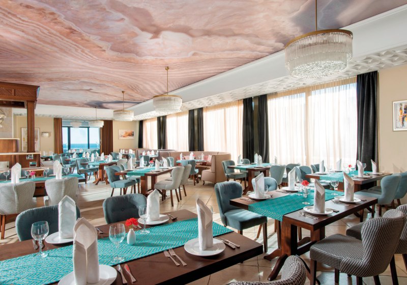 Im Hauptrestaurant wählt Ihr zwischen Frühstück, Halb- oder Vollverpflegung bis hin zu All-Inclusive, inklusive Live-Kochen, Snacks und Getränken nach Karte. Kindermenüs und Diätgerichte sind vorgesehen, sodass Ihr Speisepläne präzise abstimmen könnt. Der Eindruck aus den Bewertungen: Essen „Hervorragend“, getragen von Struktur und Auswahl. Highlight: Live-Kochen für frische, punktgenau zubereitete Speisen.