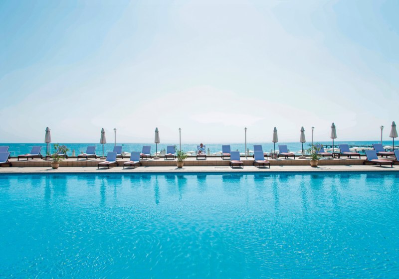 The Palace Hotel empfängt Euch direkt am feinsandigen Strand von Sveti Konstantin mit einer klar strukturierten Ausrichtung: entspannte Strandtage, verlässlicher Komfort und ein fokussiertes Angebot von Spa bis Animation. Ihr bewegt Euch zwischen Strand, Garten und einem kompakten Ensemble aus Lobby, Bars und Restaurant. Das Haus wirkt geordnet, ruhig und zweckmässig, ohne Schnörkel. Highlight: Direktlage am Strand mit bereitgestellten Liegen und Sonnenschirmen.