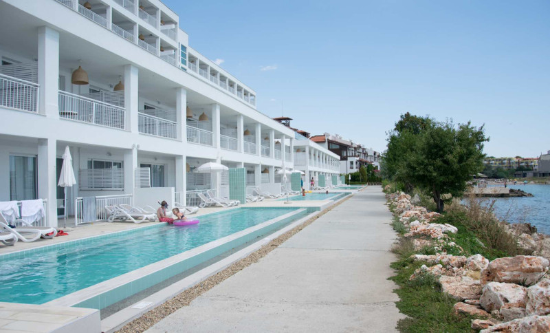 - Wasserwelten: Pools an Strand und Hang, Infinity‑ und Kinderpools mit Rutschen.