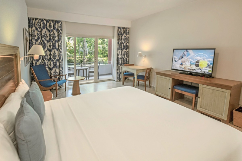 Die 427 Zimmer des Hotels sind komfortabel eingerichtet und mit modernen Annehmlichkeiten wie Klimaanlage, Safe, Minibar, Satelliten-TV und Kaffee-/Teezubehör ausgestattet. Alle Zimmer verfügen über einen Balkon und entweder Meerblick oder Gartenblick. Zudem gibt es Familienzimmer mit zusätzlichem Platz.