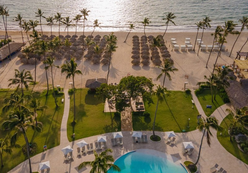 Direkt an der Playa Bavaro gelegen, erlebt Ihr Strand und Meer ohne Umwege. Die Anlage bettet sich in einen tropischen Garten, der die Wege zu Pool, Restaurants und Abendlocations begleitet. So entsteht eine klare Orientierung: Strandliegen und Sonnenschirme befinden sich ebenso vor Ort wie weitere Rückzugsorte auf der Sonnenterrasse. Diese Lage reduziert Transfers, erhöht Eure Strandzeit und lässt Euch den Tagesrhythmus frei planen – vom Morgenspaziergang bis zum abendlichen Programmpunkt.