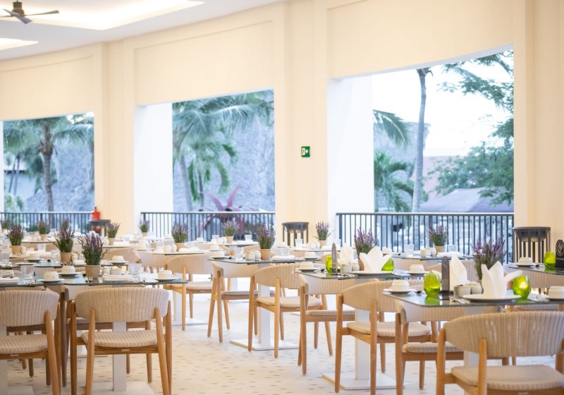 Ihr esst vielseitig: ein Hauptrestaurant mit Buffet, dazu drei À-la-carte-Optionen für abwechslungsreiche Abende. Ergänzend warten Pizzeria und Crepes-Bar für den schnellen Genuss. Vier Bars, darunter Pool- und Strandbar, versorgen Euch tagsüber nah am Geschehen; eine Saftbar am Strand setzt frische Akzente direkt am Wasser.