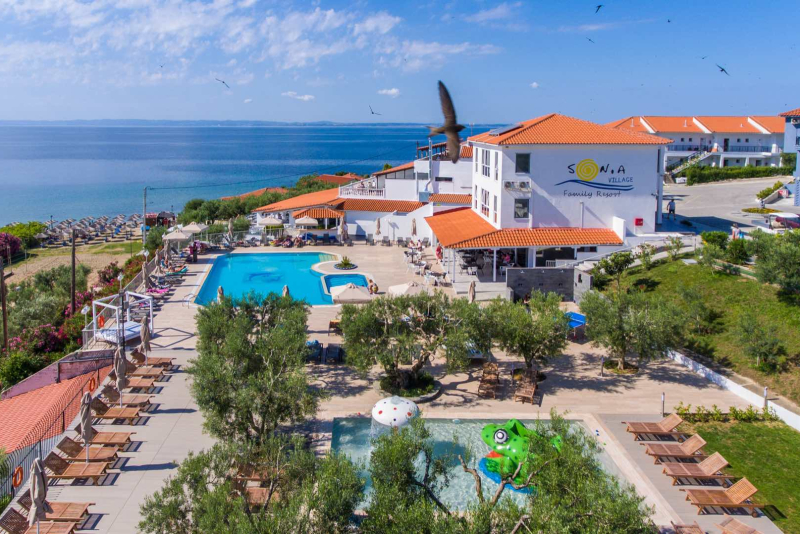 Das Sonia Village Resort befindet sich in einer bevorzugten Lage, unmittelbar am Strand. Gäste können die Natur und die Schönheit der umgebenden Landschaft genießen, während sie gleichzeitig die zahlreichen Möglichkeiten für Outdoor-Aktivitäten und Wassersport nutzen, die in der Nähe angeboten werden.
