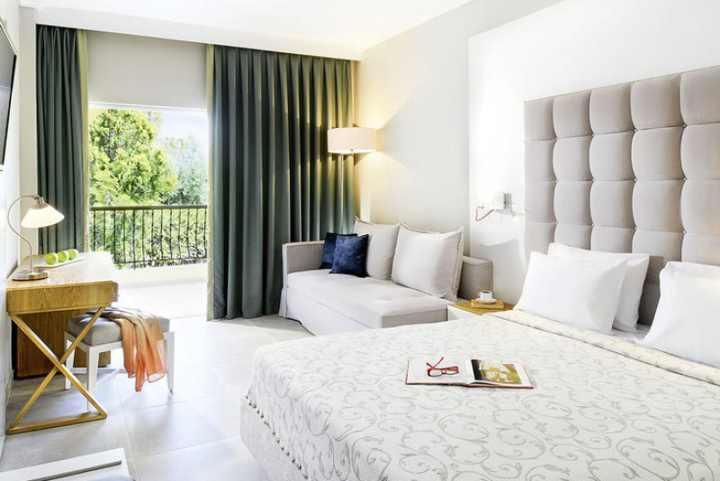 Die eleganten Zimmer im Portes Beach Hotel sind ca. 25 qm groß und können bis zu zwei Erwachsene und zwei Kinder oder drei Erwachsene und ein Kind beherbergen. Sie sind mit einem Bad oder Dusche/WC, Haartrockner, Minikühlschrank, Sat.-TV, Telefon und Balkon oder Terrasse ausgestattet. Die Klimaanlage ist individuell regulierbar und saisonbedingt vorhanden.