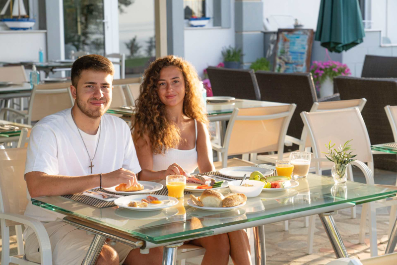 Bei der Verpflegung handelt es sich im Possidona Beach entweder nur um Übernachtung mit Frühstück oder aber Halbpension. Beide Mahlzeiten werden in Buffetform angeboten. Im Hotel sind zusätzlich aber auch ein Restaurant und eine Bar vorhanden.Sport / Unterhaltung / Pool