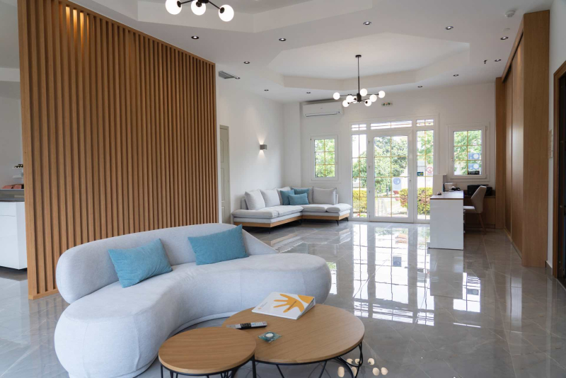 Wer möchte, kann im Possidona Beach ein zusätzliches Kinderbett aufstellen lassen. Die Hoteleigentümer werden als ausgesprochen kinderfreundlich beschrieben. Es gibt im Hotel einen kostenlosen Internetzugang. Auf Anfrage steht ein Weckdienst bereit. Es gibt einen Hotelarzt, der auf Abruf kommt, wenn er gebraucht wird. Für ein eigenes Auto oder einen Mietwagen gibt es einen hoteleigenen Parkplatz für die Gäste. Zur Hotelrezeption gehört eine Lobby. Ganz in der Nähe sind auch ein Restaurant und eine Bar. Liegestühle und Sonnenschirme können die Hotelgäste einmal am hoteleigenen Strandabschnitt nutzen, aber auch im hoteleigenen Garten, der ebenso die Möglichkeit zu Ruhe und Entspannung bietet.
