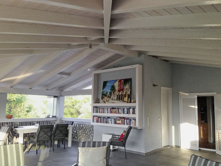 Ihr wohnt in Acharavi im Norden der Insel, mit kurzen Wegen als rotem Faden. Rund 100 Meter trennen Euch vom Ortskern, was schnelle Wege für Besorgungen oder einen kurzen Bummel ermöglicht. Der Kiesstrand liegt etwa 300 Meter entfernt – nah genug für spontane Badepausen, weit genug, um den Tag ruhig zu beginnen. Das Umfeld wirkt übersichtlich und gut strukturiert.