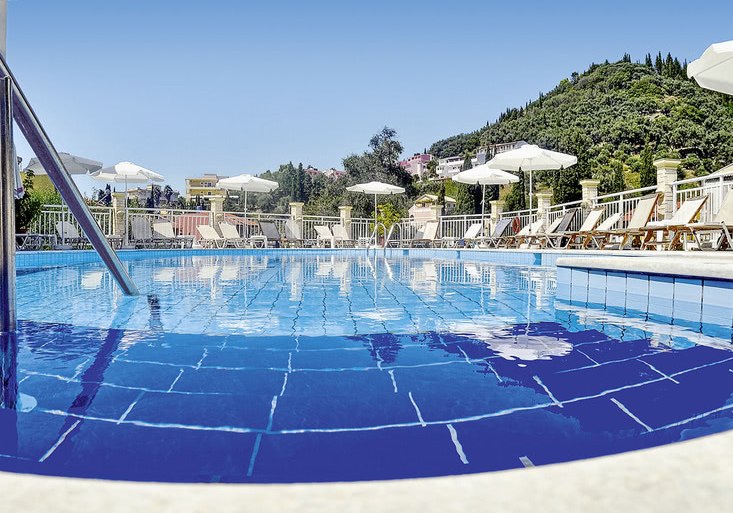 Die Lage passt zu entspannt-aktiven Tagen: morgens schwimmen, mittags Snack, nachmittags Strandgang, abends Livemusik. Nichts davon ist Pflicht, alles liegt nah beieinander. Per Linienbus erreicht Ihr weitere Küstenabschnitte oder Korfu-Stadt für einen Stadtbummel, bevor Ihr zum Pool zurückkehrt. So entsteht Bewegung ohne Organisationsaufwand – einfach die Wege nutzen, die schon da sind.