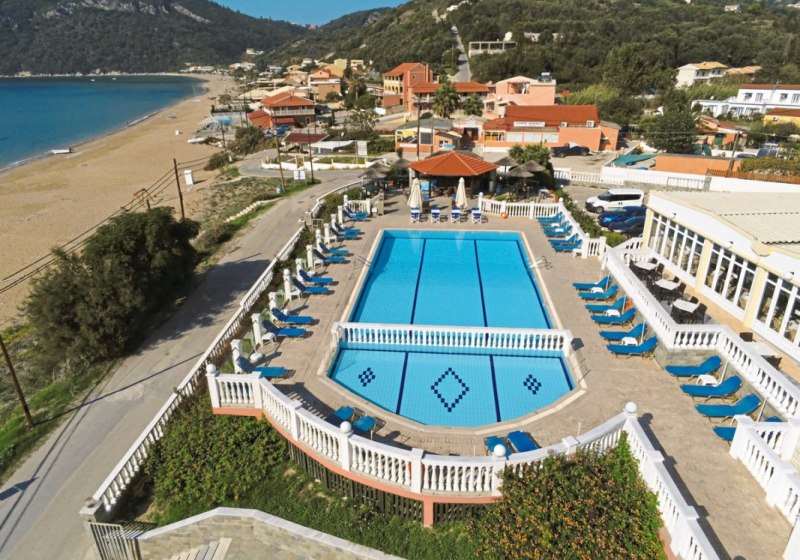 Das Hotel liegt in Agios Georgios Pagi auf Korfu, direkt am Sandstrand. Die Hauptstadt, der Flughafen und der Hafen sind jeweils etwa 35 Kilometer entfernt, was Euch planbare An- und Abreisen sowie Ausflüge ermöglicht. Ein Bowlingcenter erreicht Ihr nach ungefähr 100 Metern – ein kurzer Abendspaziergang.