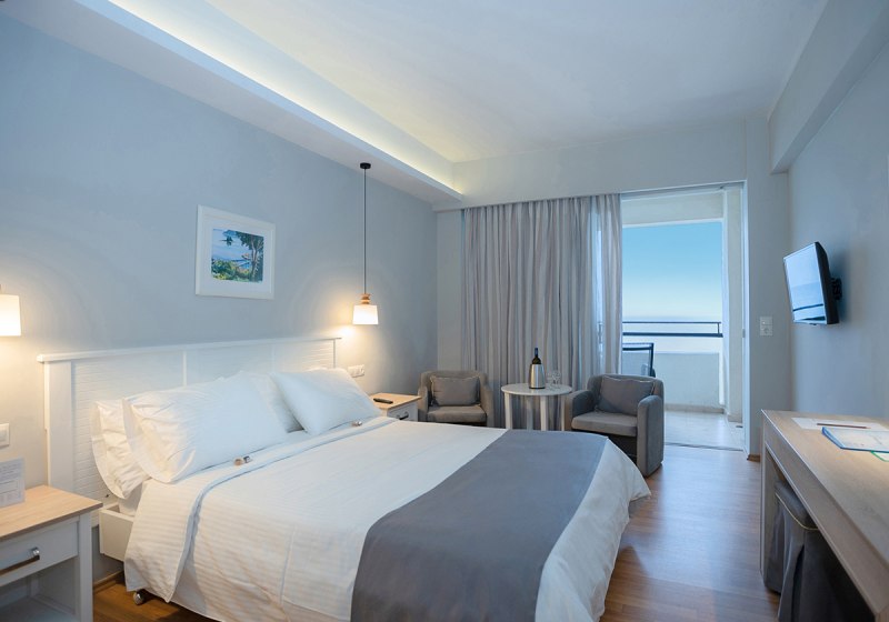 - Meerblick-Option: Ausgewählte Zimmer bieten freien Blick auf die Bucht von Dassia.