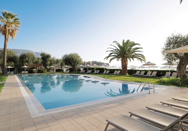 Im Elea Beach Hotel wohnt Ihr direkt am Strand von Dassia und startet den Tag mit dem Blick auf das ruhige Ionische Meer oder in die grüne Gartenanlage. Zwei Außenpools – einer mit Salz-, einer mit Süßwasser – setzen den Ton für entspannte Stunden, während Liegen und Schirme an Pool und Strand bereitstehen. Die Atmosphäre ist gelassen, mit Softanimation, Live-Musik an ausgewählten Abenden und einem klaren Fokus auf Wohlfühlen, Baden und kleine Aktivitäten. Familien finden viel Raum, von geräumigen Zimmern bis zum Kinderbecken und betreuten Programmpunkten.