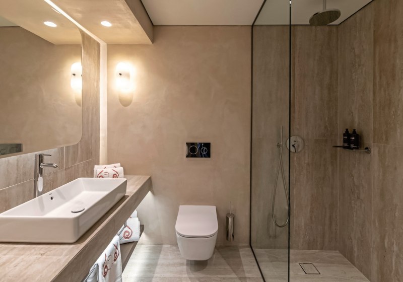 - Klarer Komfort: Walk-in-Dusche, Klimaanlage, Safe und Espresso am Morgen.