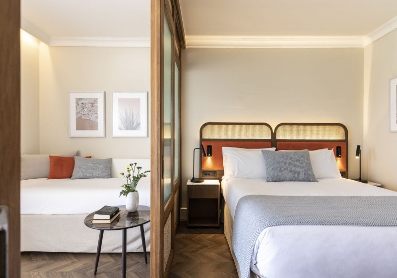 - Familienplus: Zimmer mit Schiebetür und Schlafsofa schaffen flexible Bereiche.