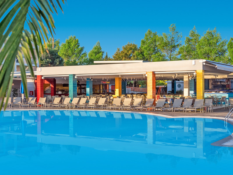 Familien finden durchdachte Bereiche mit Kinderbecken, Spielplatz und Miniclub; Paare ziehen sich an den ruhigen Pool zurück oder spazieren in wenigen Minuten zum Sandstrand. Sportflächen wie Tennisplatz, Beachvolleyball oder Basketball setzen aktive Akzente, während Ihr am Abend zwischen Buffet und zwei À-la-carte-Optionen wechselt. Die Atmosphäre bleibt angenehm mediterran und unkompliziert. Highlight: Buchtlage mit Strandnähe, zwei Poolwelten und familienfreundlichen Zonen.