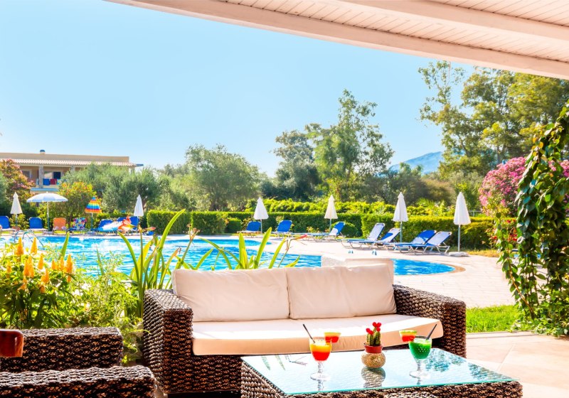Ihr urlaubt in Moraitika auf Korfu, nur etwa 250 Meter vom Sandstrand entfernt und rund 20 Kilometer vom Flughafen. Das Umfeld ist angenehm überschaubar: kurze Strecken zum Meer, klare Orientierung zwischen Garten, Pool und Restaurantterrasse. So plant Ihr Eure Tage unkompliziert, mit schnellen Schritten vom Frühstück an den Strand oder zurück zum schattigen Sitzplatz.