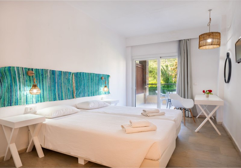 Ihr wohnt in hellen Zimmern mit möbliertem Balkon oder Terrasse. Zur Ausstattung zählen Klimaanlage, Sat-TV, Minikühlschrank und Mietsafe. Badezimmer mit Dusche, WC, Föhn und Pflegeprodukten sind klar eingerichtet. Für mehr Platz stehen Familienzimmer mit separatem Schlafraum bereit.