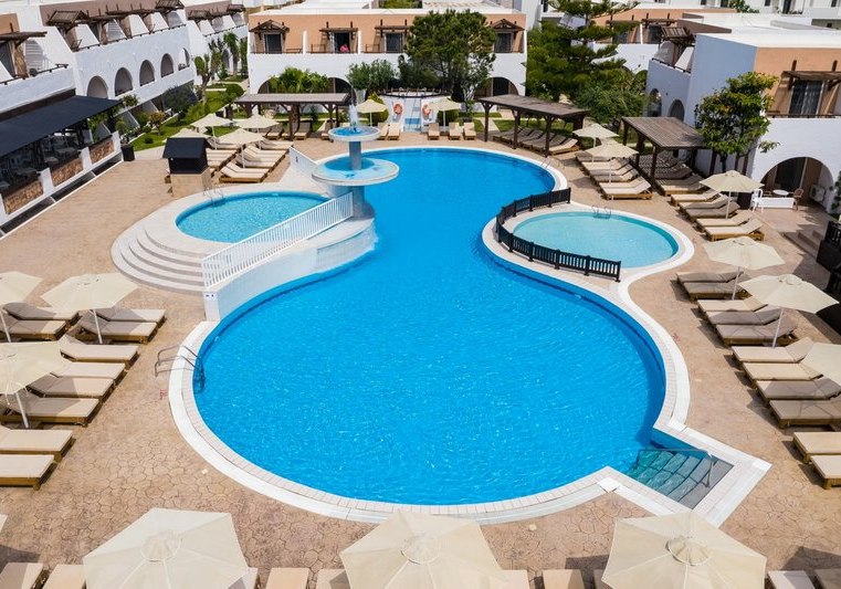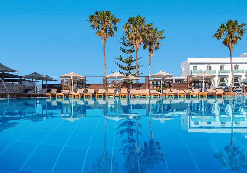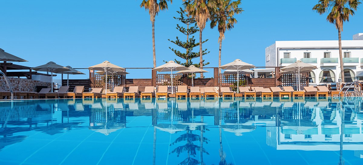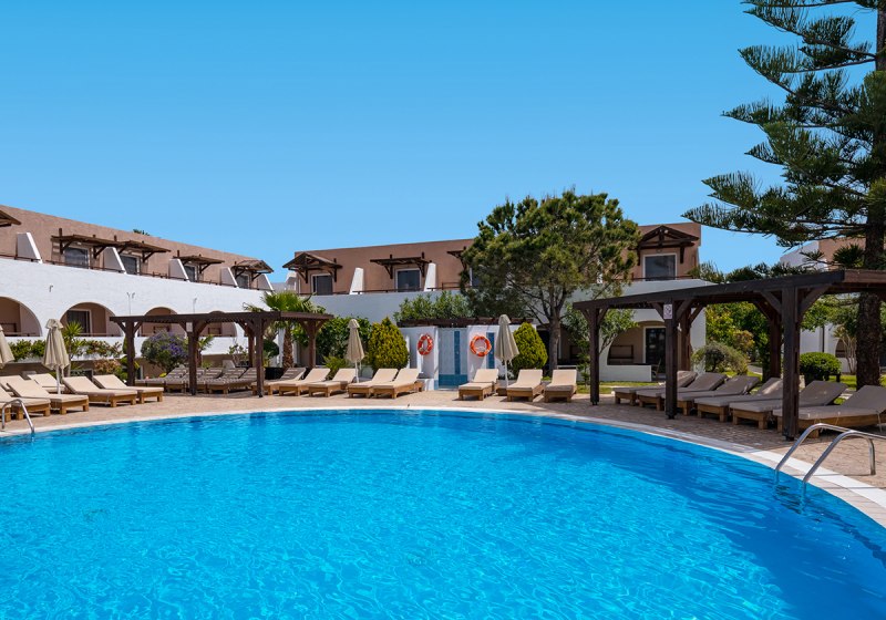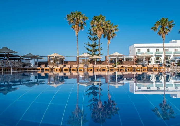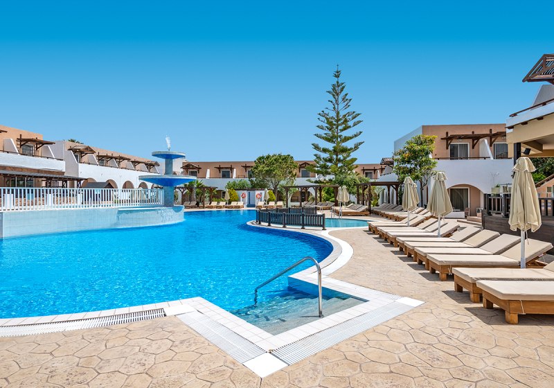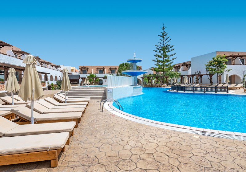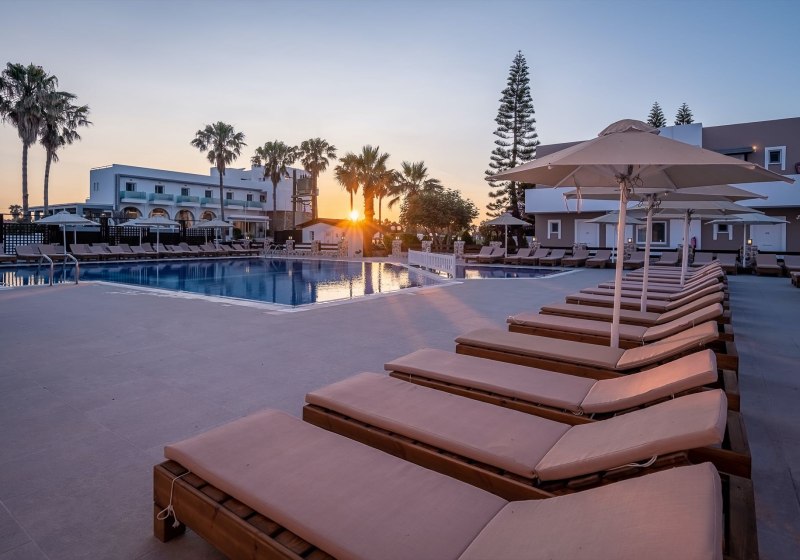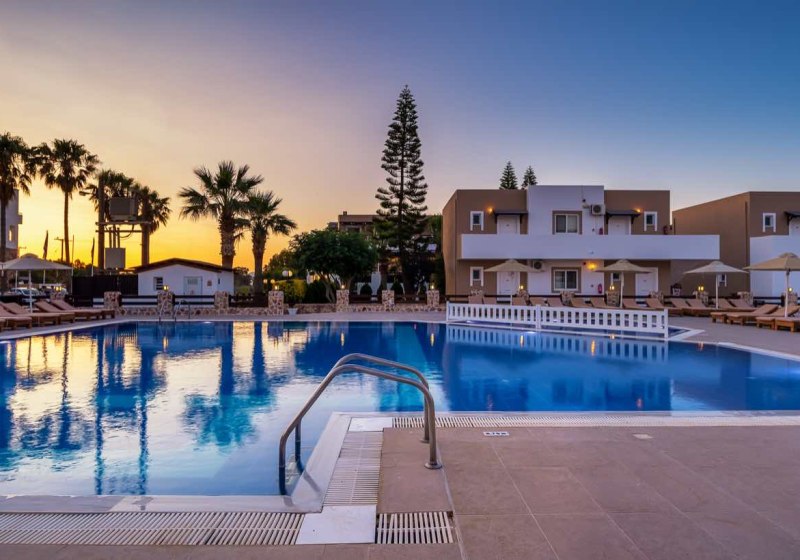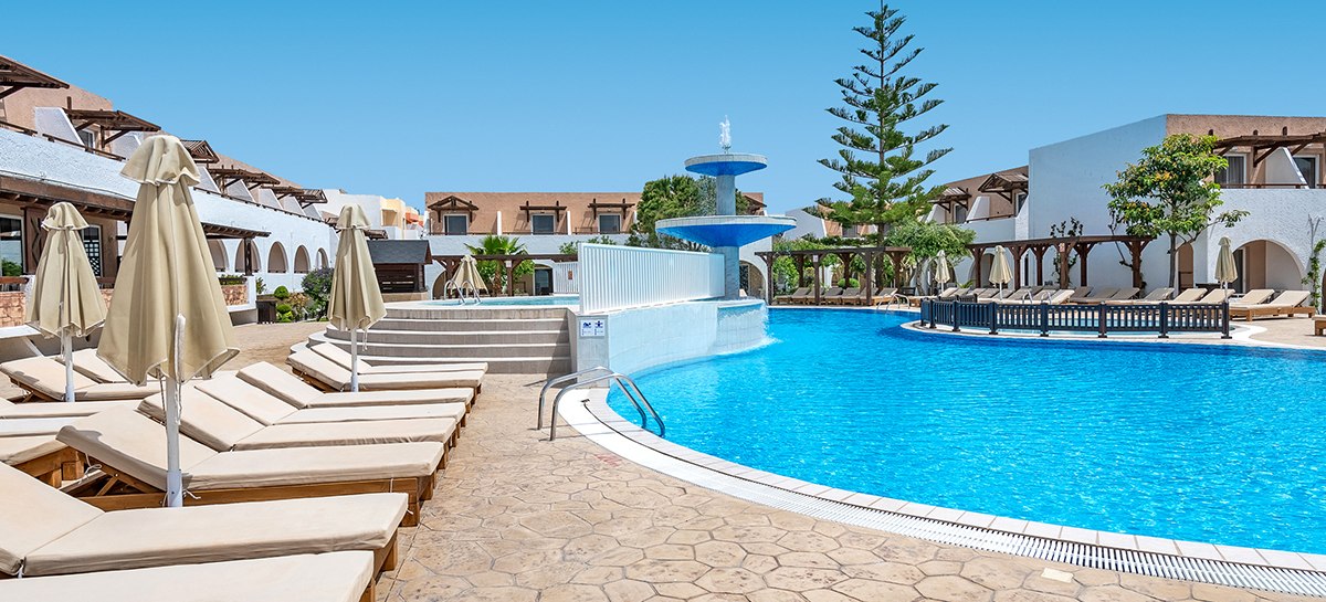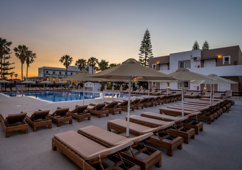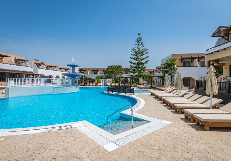 Im Gaia Village erwartet Euch ein legeres Feriengefühl mit klarer Struktur. Die Anlage in Tigaki ist überschaubar, wirkt aufgeräumt und bietet mit zwei Süßwasserpools und zwei Kinderbecken viel Raum für entspannte Tage am Wasser. Mit WLAN in der gesamten Anlage bleibt Ihr flexibel, während Ihr auf der Sonnenterrasse Platz nehmt oder Euch am Pool mit Liegen und Schirmen zurückzieht. Familien fühlen sich dank Spielplatz und Familienzimmern mit separatem Schlafraum gut aufgehoben.