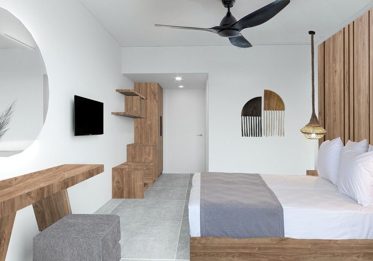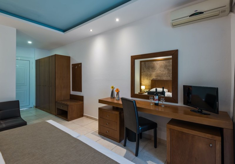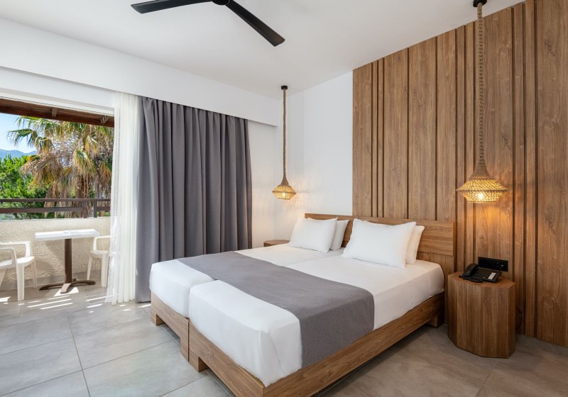 Familien greifen zu den Familienzimmern mit separatem Schlafraum, die mehr Struktur und Privatsphäre bieten. Die Zimmer sind auf Funktionalität ausgelegt und unterstützen Euren Tagesrhythmus zwischen Strand, Pool und Ortsbummel. WLAN in der gesamten Anlage hält Euch verbunden, ohne dass Ihr Euch aus dem Zimmer-Alltag herausreißen müsst. So bleibt alles, was Ihr braucht, konzentriert und nah.