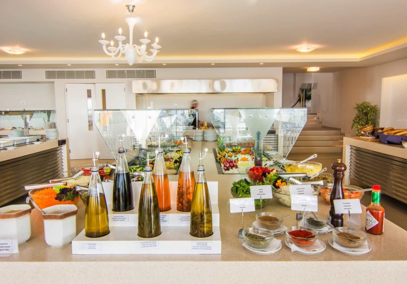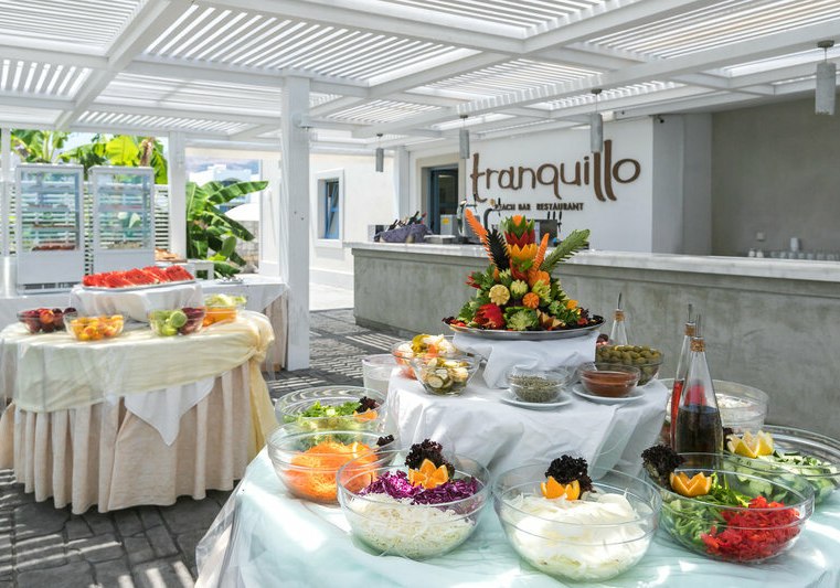 Im Hauptrestaurant erwartet Euch Buffetküche, flankiert von All-Inclusive-Leistungen mit Getränken von 10:00 bis 24:00 Uhr. Mittag- und Abendessen sind zeitlich klar definiert. Ergänzend genießt Ihr das Tranquillo Strandrestaurant, den Zephyros Grill sowie eine Pool-Snackbar und die Hotelbar. Highlight: Mehrere Esspunkte, kurze Wege zwischen Strand, Pool und Teller.