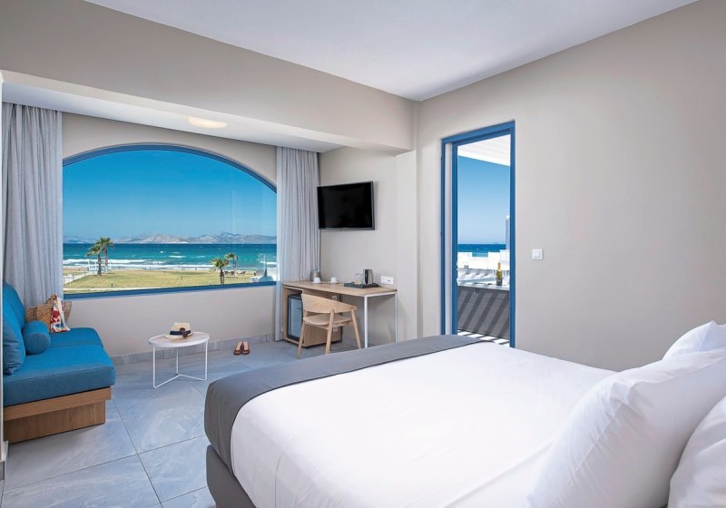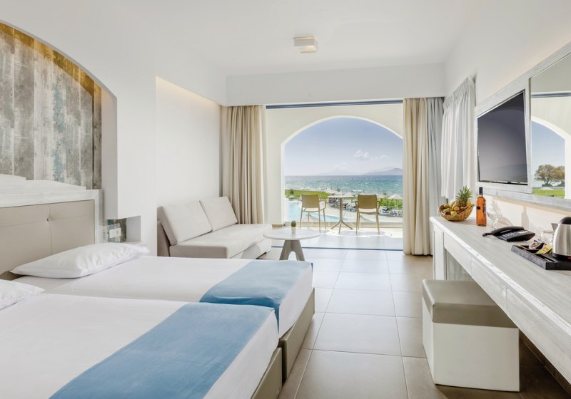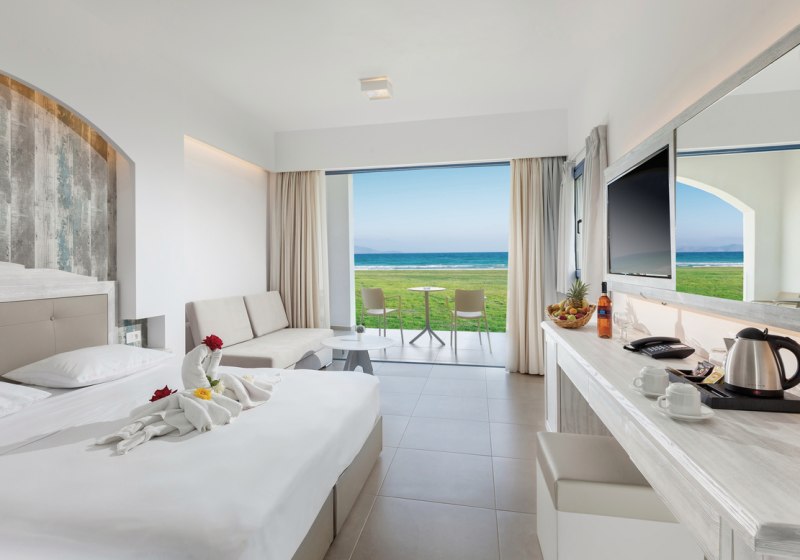 Willkommen im Aeolos Beach Hotel, wo Ihr in Lambi auf Kos wenige Meter vom Strand wohnt. Die Anlage verbindet Hotel und weitläufige Bungalowwelt mit 228 Zimmern, viel Raum im Grünen und ruhigen Zonen. Ihr bewegt Euch zwischen Aktiv-Pool, Liegewiese und dem exklusiven Ruhepool für Superior und Premium Bungalows. Highlight: Premium-Ruhezone, reservierte Liegen bieten spürbare Entspannung mit Struktur.