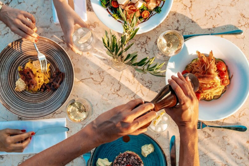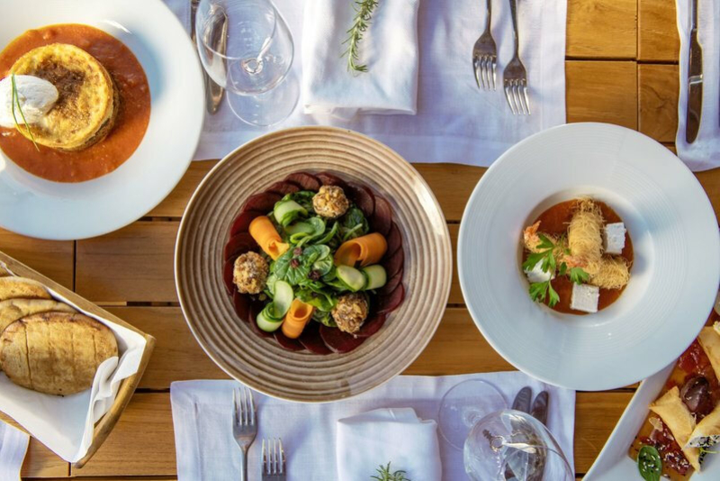 Gäste des Mitsis Selection Blue Domes können aus nicht weniger als 11 Restaurants und 7 Bars wählen. Mit einer Auswahl an Gerichten von griechischer Küche über italienische Küche bis hin zu tex-mex und Sushi, wird jeder Gaumen zufriedengestellt. Getränke, Snacks und Tee am Nachmittag werden ebenfalls angeboten.