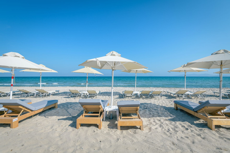 Das Gaia Palace Hotel ist eine exklusive 5-Sterne-Anlage, eingebettet in eine grosszügige, idyllische Gartenanlage und verfügt insgesamt über 154 hochwertig ausgestattete Zimmer. Die Anlage ist elegant gestaltet und bietet seinen Gästen eine wunderschöne Poollandschaft sowie modern eingerichtete Zimmer. Besonders hervorzuheben ist der Minizug, der die Gäste mehrmals täglich zum nahegelegenen, traumhaften Sandstrand 'Mastichari' fährt. Die hoteleigene Lobbybar und Poolbar laden zum Verweilen ein. Darüber hinaus bietet das Hotel ein Schwester- und/oder Nachbarhotel, dessen Einrichtungen teilweise mitgenutzt werden können.