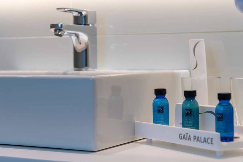 Zum Wellnessbereich des Gaia Palace Hotel gehören ein Hallenbad, eine Sauna und Massageangebote. Im Wellnessbereich können sich die Gäste verwöhnen lassen und die Ruhe genießen. Dieses Hotel bietet vielfältige Möglichkeiten für Fitness und Aktivsport. Dazu gehören Aerobic, ein Fitnessraum, Basketball, Beachvolleyball, Billard, Minigolf, Tennis und Tischtennis.
