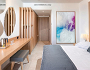 Das neue Resort hat 200 klimatisierte Zimmer und Suiten. Die Gästebereiche verteilen sich auf dem gesamten Gelände. Sie sind terrassenförmig angeordnet, dass jeder Gast ausreichend Privatsphäre auf dem eigenen Balkon oder der Terrasse hat und ungestört auf das Meer bzw. in den Garten der Anlage schauen kann. Einige Zimmer und Juniorsuiten haben Gemeinschaftspools, andere Privatpools. Zur Ausstattung gehören Doppelbetten, Flachbildfernseher, Safe und Telefon, Tee/Kaffeestation, große Badezimmer mit Duschen und/oder Badewanne, Haartrockner und Hotelkosmetik. Die Zimmer sind modern, hell und in kräftigen Meeresfarben gehalten.Gastronomie / Restaurants