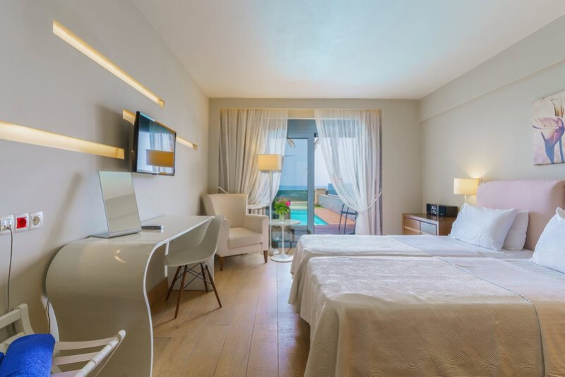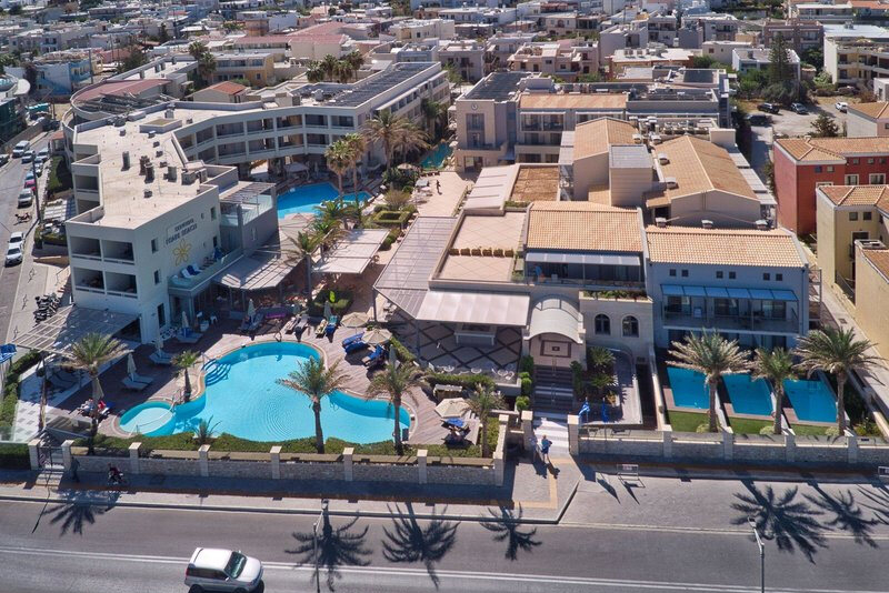 Das Aegean Pearl bietet eine ebenso beeindruckende Lage. Direkt am Strand gelegen und nur durch die Uferpromenade getrennt, ist es ein idealer Ort für Wasserliebhaber. Es gibt direkten Zugang zum hoteleigenen Sand-Kiesstrand, der mit dem Gütesiegel Blaue Flagge ausgezeichnet wurde. Darüber hinaus ist die Entfernung zum Flughafen sowohl Heraklion (HER) als auch Chania (CHQ) gut erreichbar. Das Stadtzentrum ist nur 2,2 km entfernt und Einkaufsmöglichkeiten, Restaurants und Bars sind in unmittelbarer Nähe.