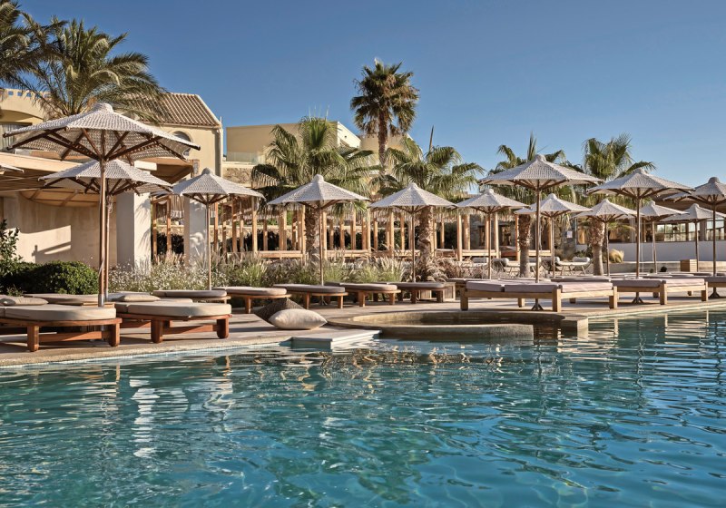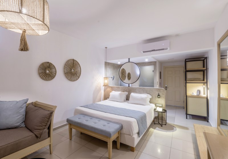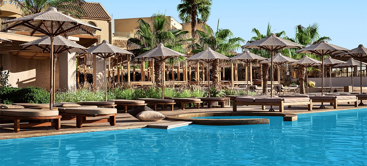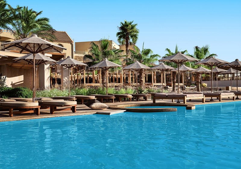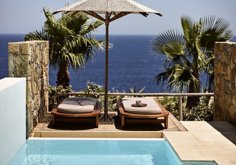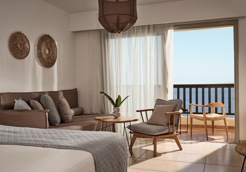 Die Atmosphäre ist entspannt, tagsüber dominiert der Rhythmus aus Schwimmen, Sonnen und kleinen Pausen an den Pool‑Snackbars. Abends verlagert sich das Geschehen auf die Terrassen des Hauptrestaurants und in die Bars, wo Livemusik oder DJ‑Sets den Ton angeben. Wer Abwechslung schätzt, wechselt zwischen asiatischer, kretischer und sizilianischer Küche oder zieht sich in eine Suite mit Meerblick zurück. Hier gestaltet Ihr euren perfekten Urlaub klar, leicht und ohne Umwege.
