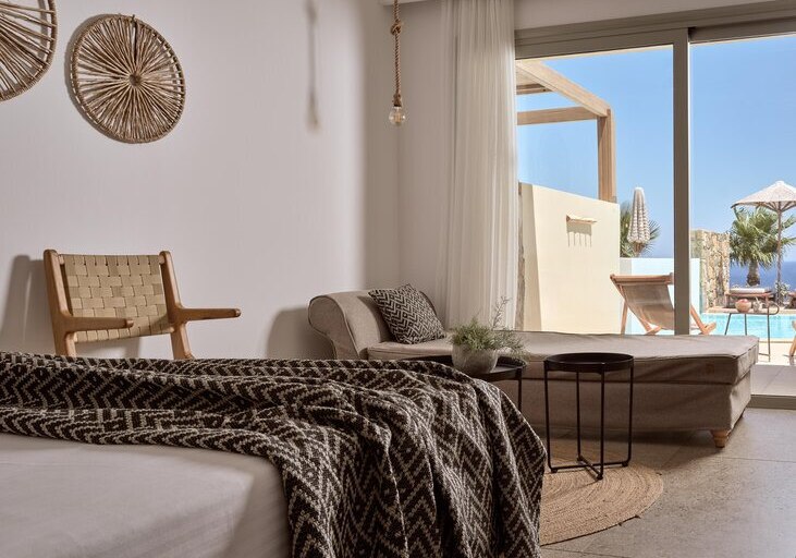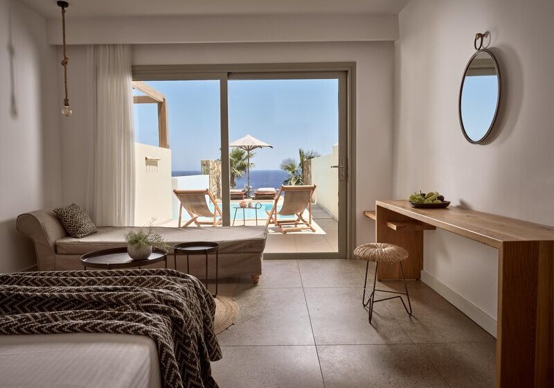 Die Lage nahe der Bucht Mononaftis, die Bushaltestelle direkt vor dem Haus und die gute Anbindung nach Heraklion machen Planung leicht. Zimmeroptionen vom Swim‑up bis zur Suite mit privatem Pool setzen präzise Akzente. Wer strukturierte Tage mit Meerfokus sucht, findet hier einen klaren Rahmen für einen erholsamen Urlaub.