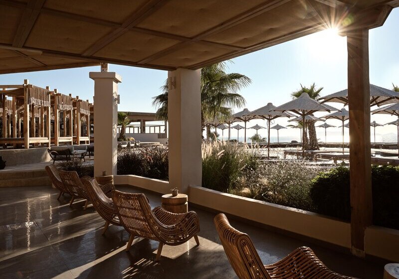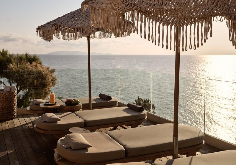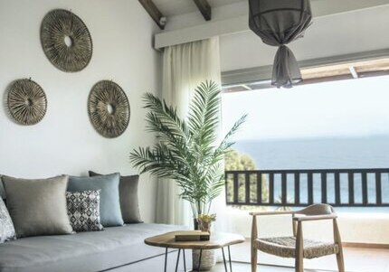 Im Seaside A Lifestyle Resort erwartet Euch ein stilbewusst geführtes Resort mit klarem Blick aufs Meer und kurzen Wegen zum Strand Mononaftis. Drei Salzwasserpools strukturieren die gepflegte Gartenanlage, Terrassenflächen öffnen sich dem Licht, und die öffentlichen Bereiche wirken angenehm großzügig. Ihr wohnt in einem Haus mit 245 Zimmern, das Service und Organisation über eine 24‑Stunden‑Rezeption und WLAN in den öffentlichen Bereichen sichtbar macht.