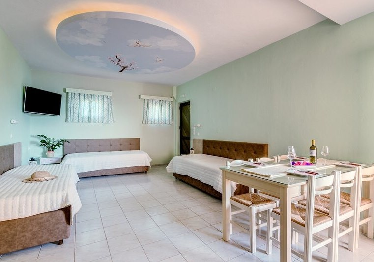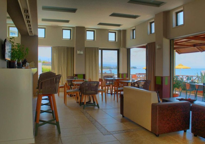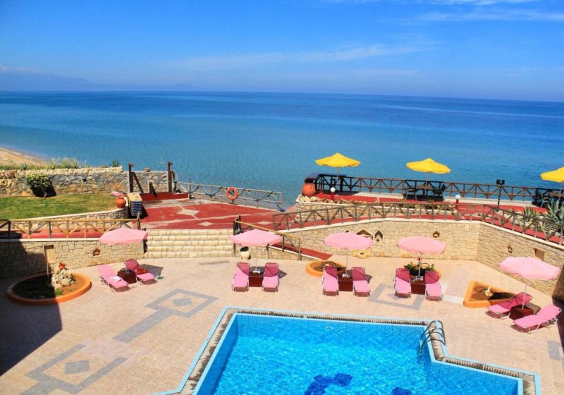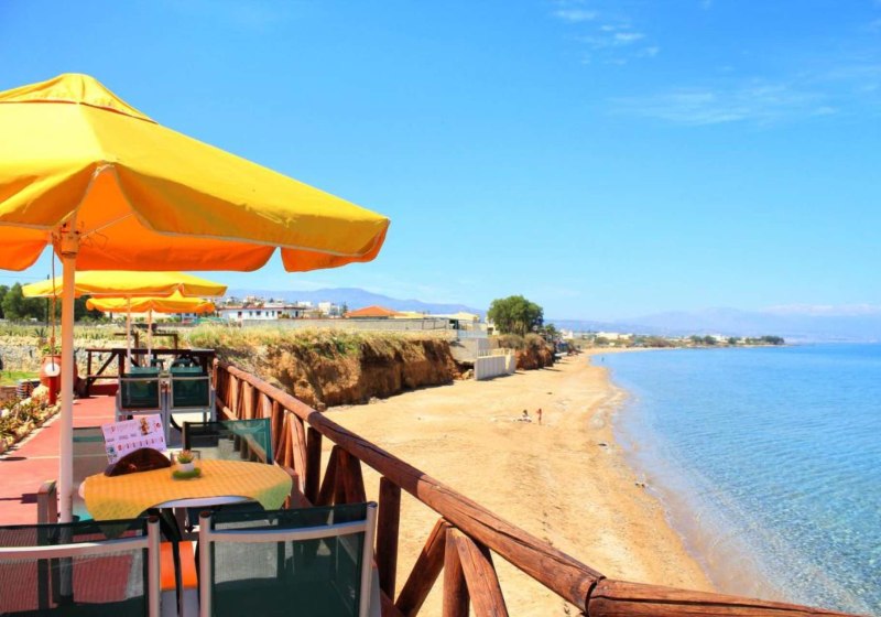 - Direktlage Strand: Unmittelbar am Sandstrand von Sfakáki mit hoteleigenem Abschnitt.