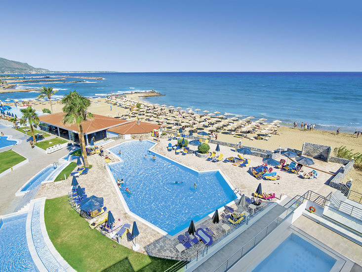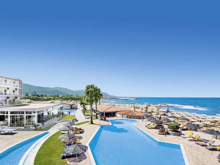 Direkt am Sandstrand von Malia empfängt Euch allsun Hotel Carolina Mare mit klarer Struktur: Haupthaus und mehrere Wohngebäude, 273 Zimmer, viel Platz für ruhige Stunden und kurze Wege zum Meer. Die Atmosphäre wirkt entspannt und aufgeräumt, mit Terrassen und Sitzgruppen, wo Ihr den Blick über Pool und Küste schweifen lasst. Highlight: Direkte Strandlage mit weitläufigen Außenbereichen und Meerblick-Restaurant.