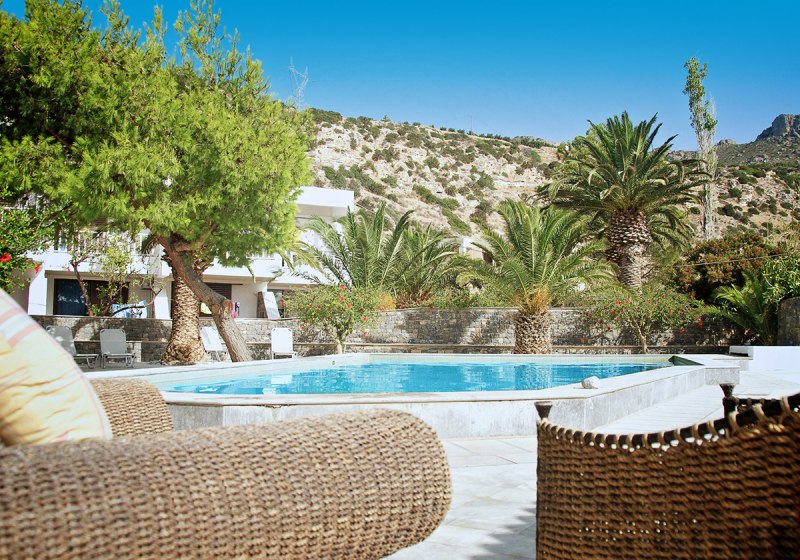 Im Avra Beach in Koutsounari wohnt Ihr direkt am Sandstrand, mit kurzem Weg ins Wasser und Blick auf Palmen und Meer. Die Anlage wirkt überschaubar und entspannt, mit Pool, gepflegtem Palmengarten und eigener Strandzone mit inkludierten Liegen und Schirmen. Hier gestaltet Ihr den Tag frei zwischen Strand, Pool und der hauseigenen Taverne.
