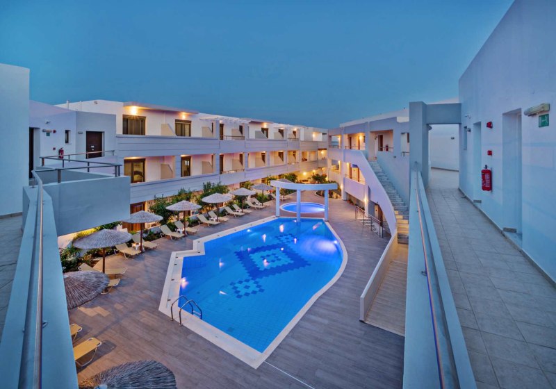 Willkommen im Delfina Boutique Hotel, einem überschaubaren Boutique-Haus in Kavros, das 2021 renoviert wurde und mit 52 Zimmern bewusst intim bleibt. Hier lebt Ihr zwischen Strandnähe und dörflichem Flair, startet den Tag entspannt am Pool und kehrt abends auf die Terrasse des Bar/Cafés zurück. Die Atmosphäre wirkt klar strukturiert, gepflegt und angenehm ruhig.