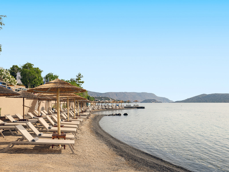 Ihr wohnt in Elounda auf Kreta, mit Blick auf die Insel Spinalonga. Der Kieselstrand liegt nur durch eine Straße getrennt gegenüber, Liegen und Schirme sind dort inklusive. Bis ins Zentrum von Elounda sind es circa zwei Kilometer, zum Flughafen Heraklion etwa 75 Kilometer. Highlight: Strandnähe mit kurzer Distanz zum Ort Elounda.