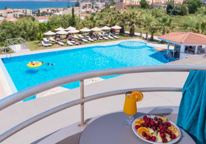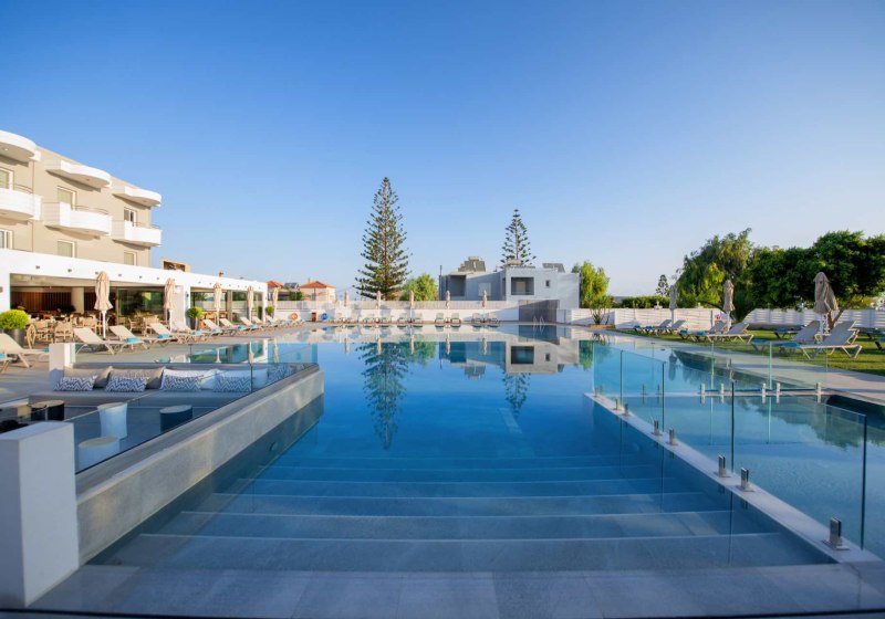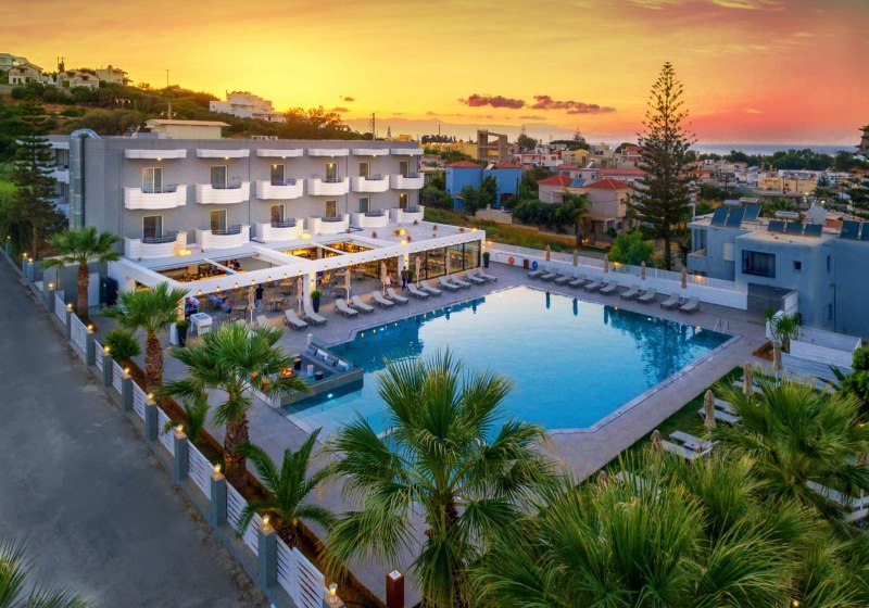 Das Dore Hotel verbindet zentrale Lage in Agia Marina mit kurzer Distanz zum Sandstrand. Außenpool, Kinderbecken, Fitnessraum und klar strukturierte Services bilden das Rückgrat. Kulinarisch führt Euch ein Buffetrestaurant mit Live-Kochen durch den Tag, ergänzt von der Pool- und Snackbar.
